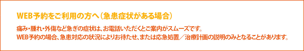 ※ホワイトニング、クリーニング、 定期検診ご希望の方は、お電話にてご予約お願いいたします。